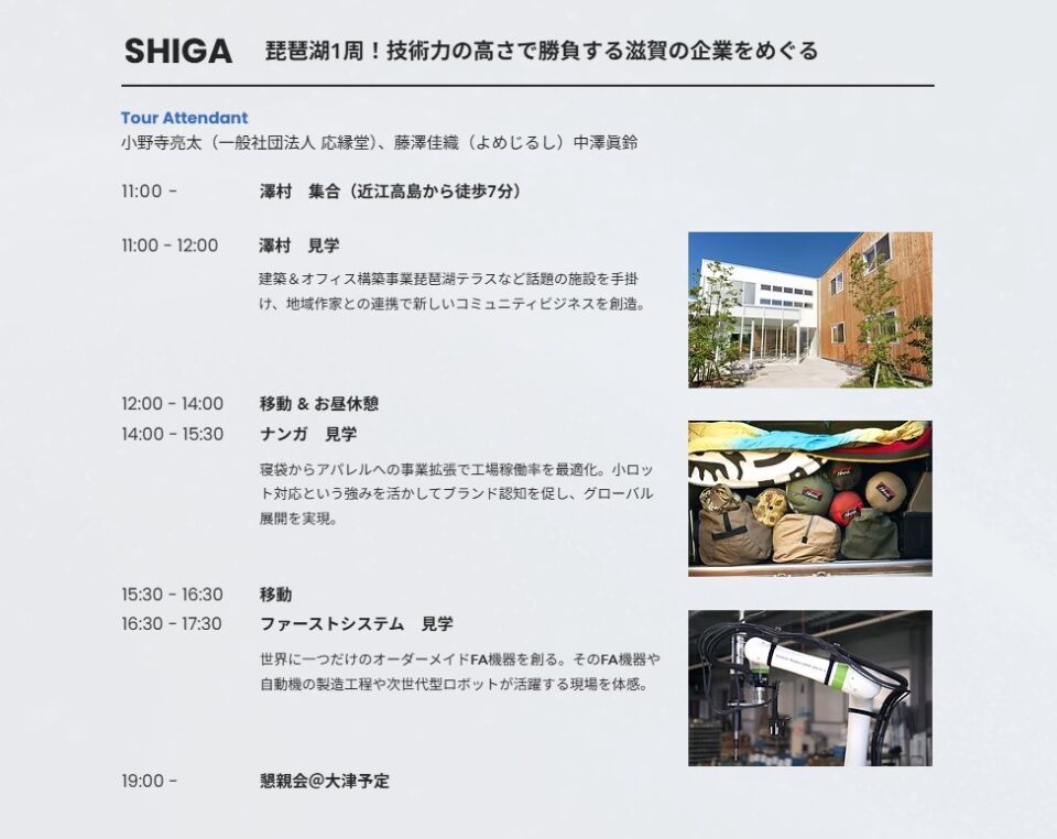 Day1の企業ツアーは、京都・大阪・滋賀の3箇所で実施され、それぞれ関西のアトツギ企業を巡ります。